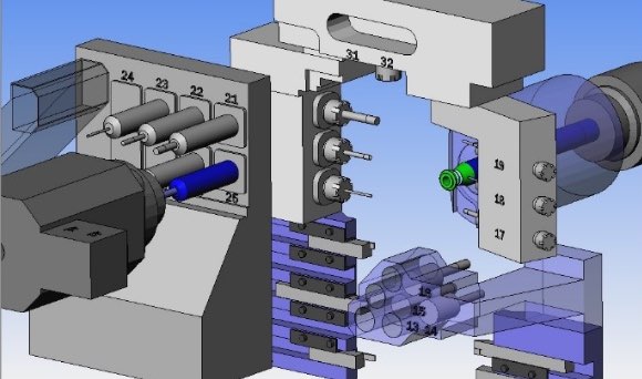 ・多主軸,多刀塔的同步實體模擬與碰撞干涉檢測