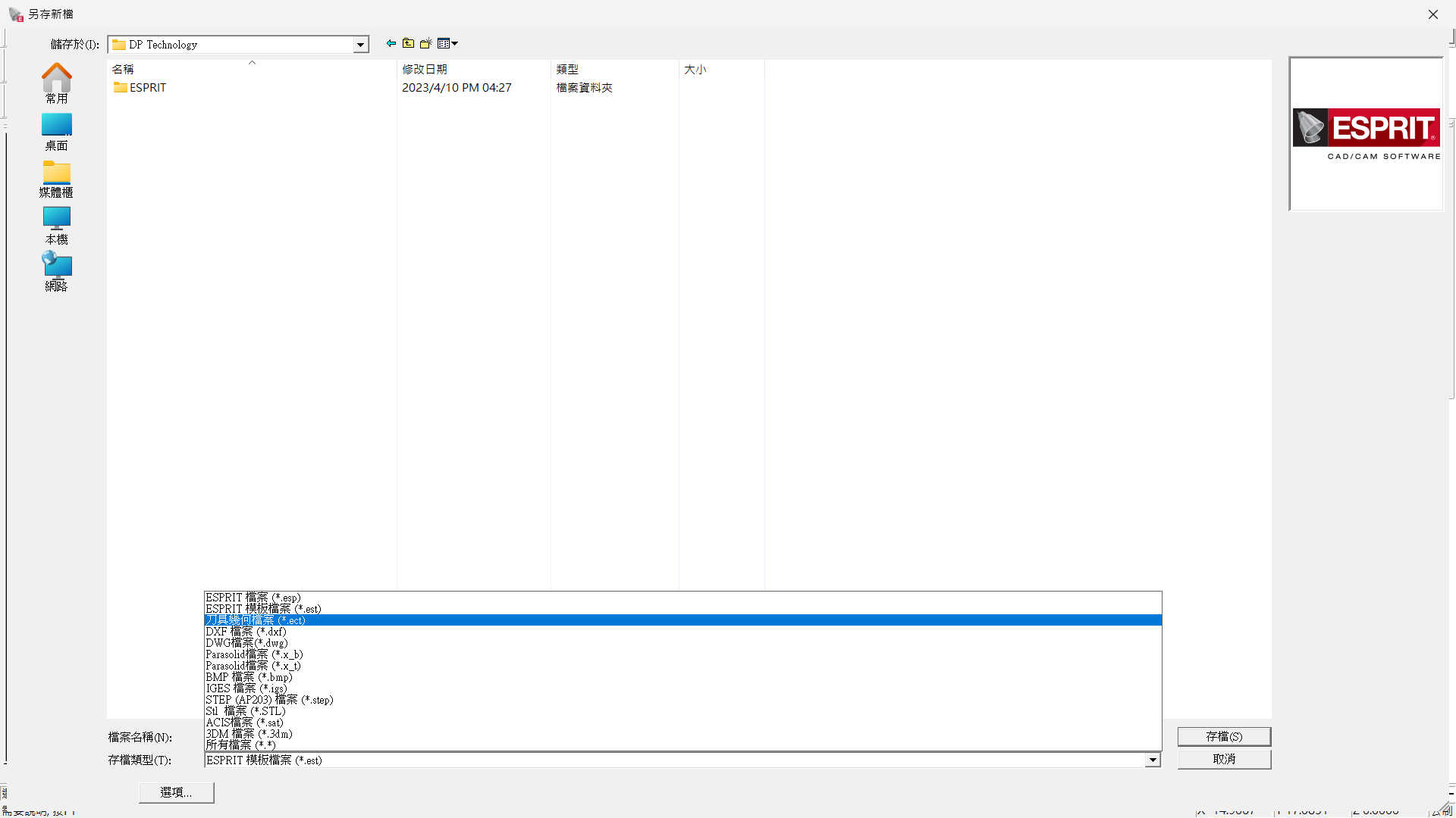 4.另存新檔 → 刀具幾何檔案 .ect