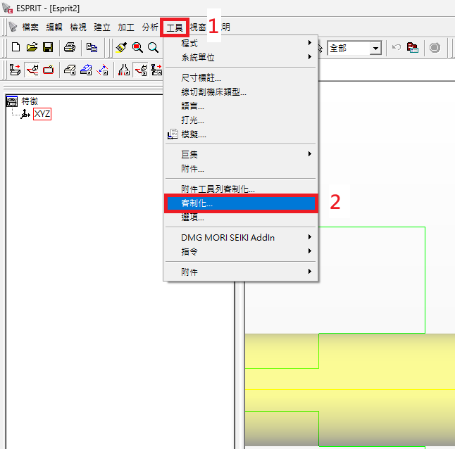 鼠標移至下拉式選單點擊 工具 > 客製化