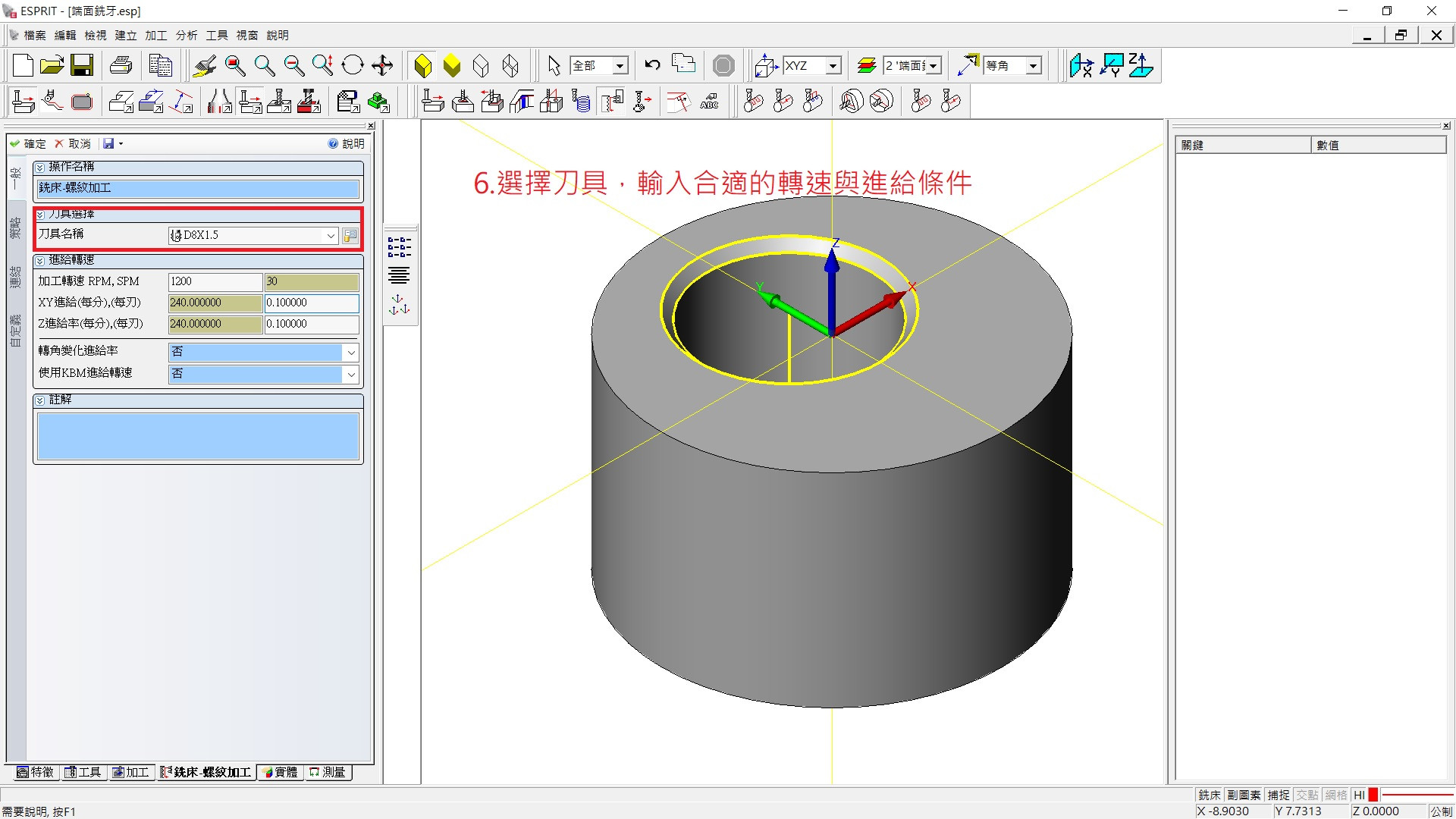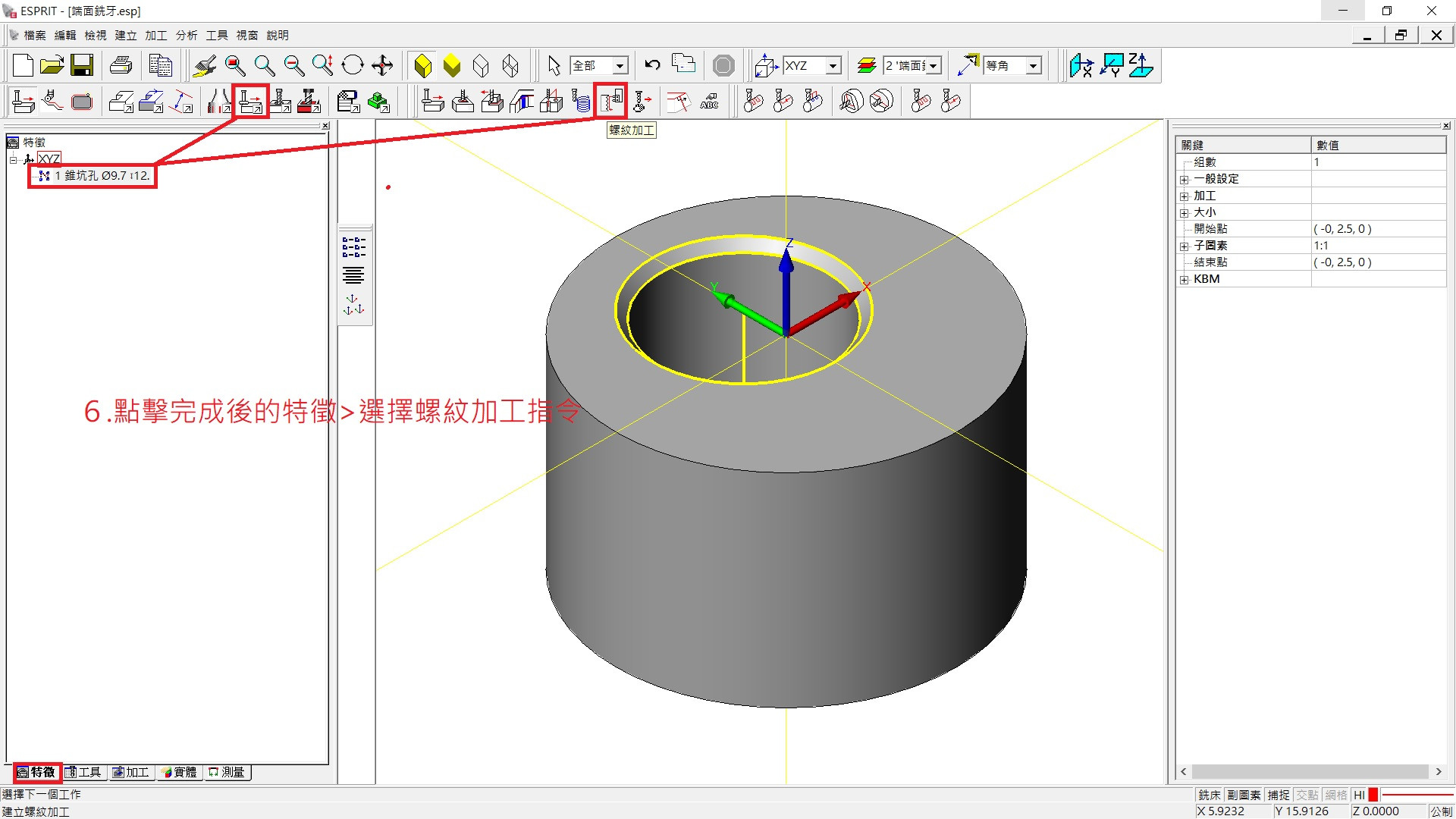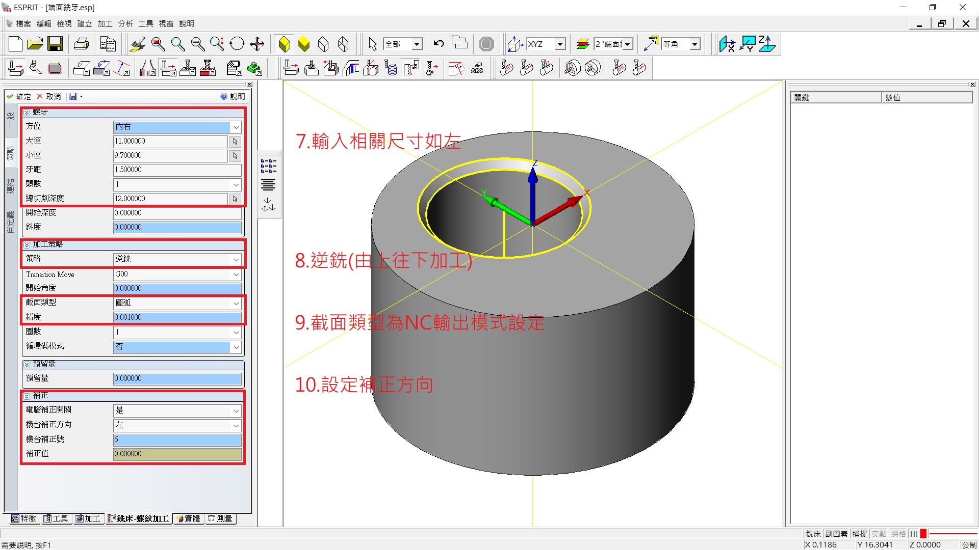 範例:下孔徑為 9.7,螺紋尺寸為M11XP1.5