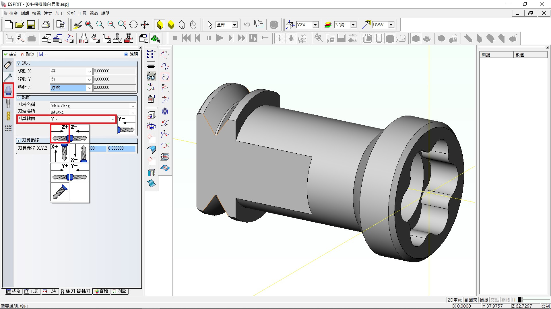 檢查該工法的刀具設定,刀具軸向是否設定合理