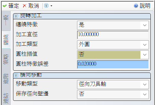 (刀具必須選定側面徑向刀具,選擇端面軸向刀具,模擬將發生報警訊息)