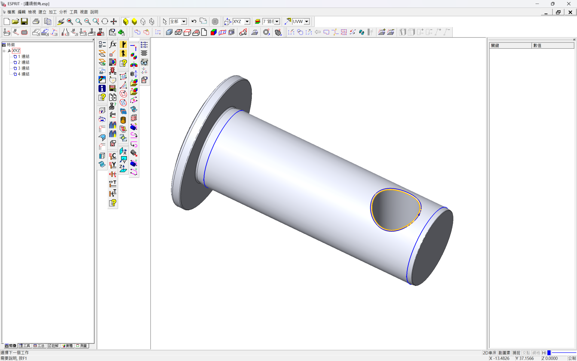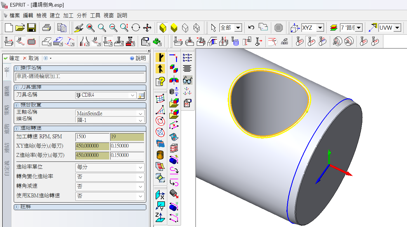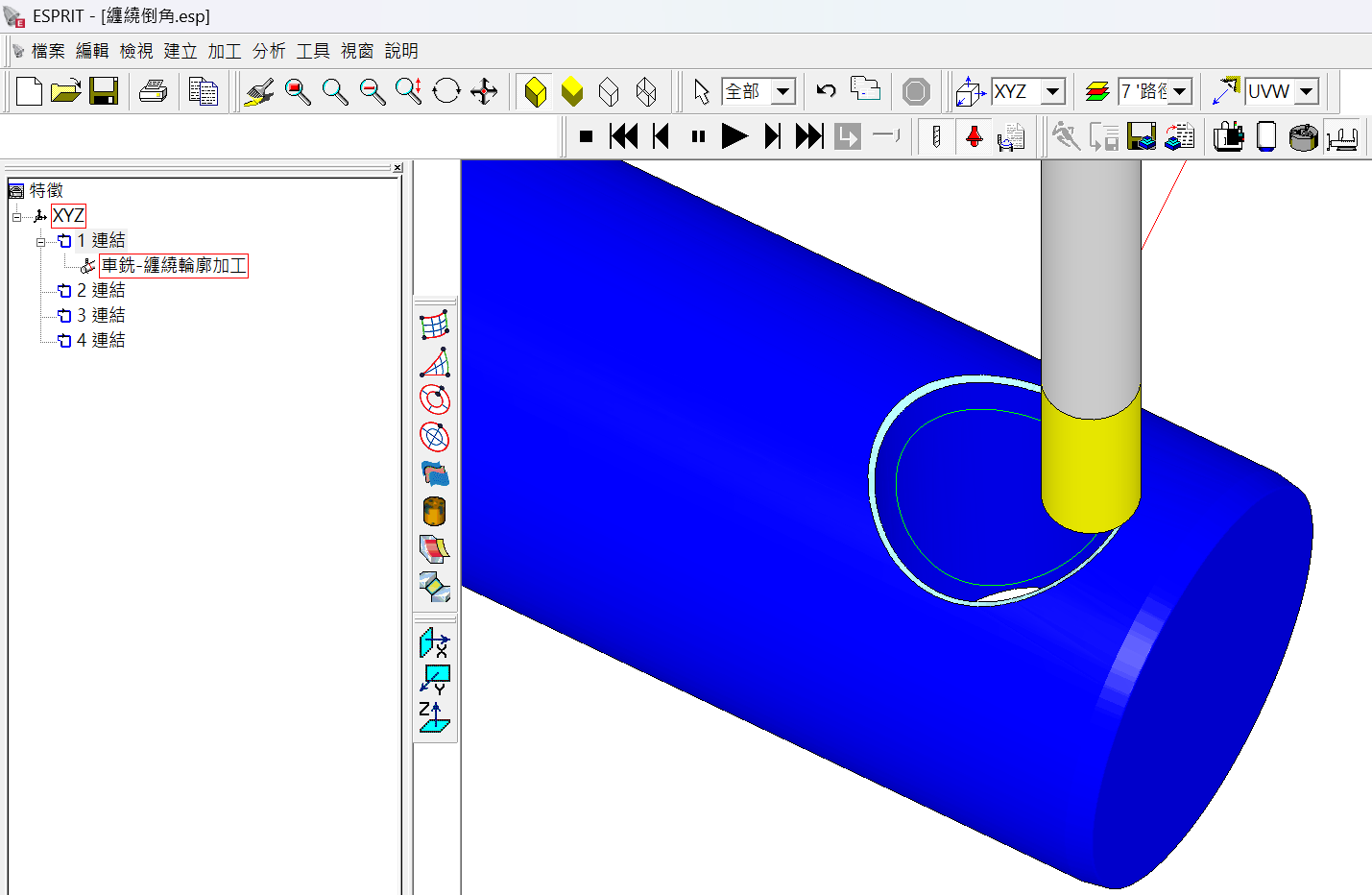3.專案管理>特徵欄位>點擊完成後的特徵>點擊車銑複合>纏繞輪廓![]()